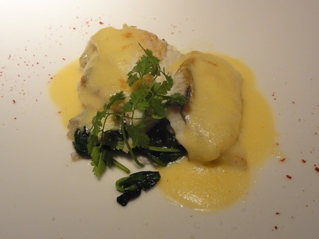 白身魚にオランデーズソース(バターに卵黄)。シンプルな調理ですが文句なしにうまい。