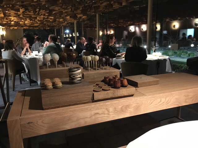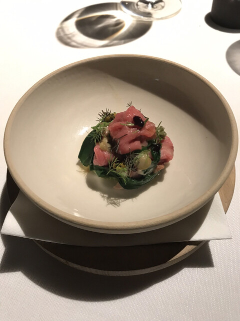 客前で仕上げる料理も多く、計算された世界観に溢れた空間と料理構成。