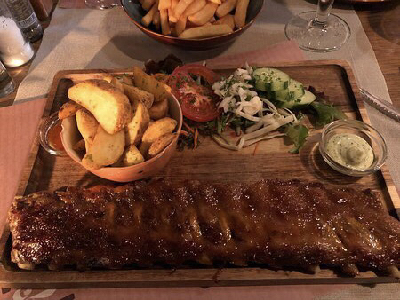 連れのご夫婦はホテルでダウンだったので、2人で予約も無しで夕食に出かけた。