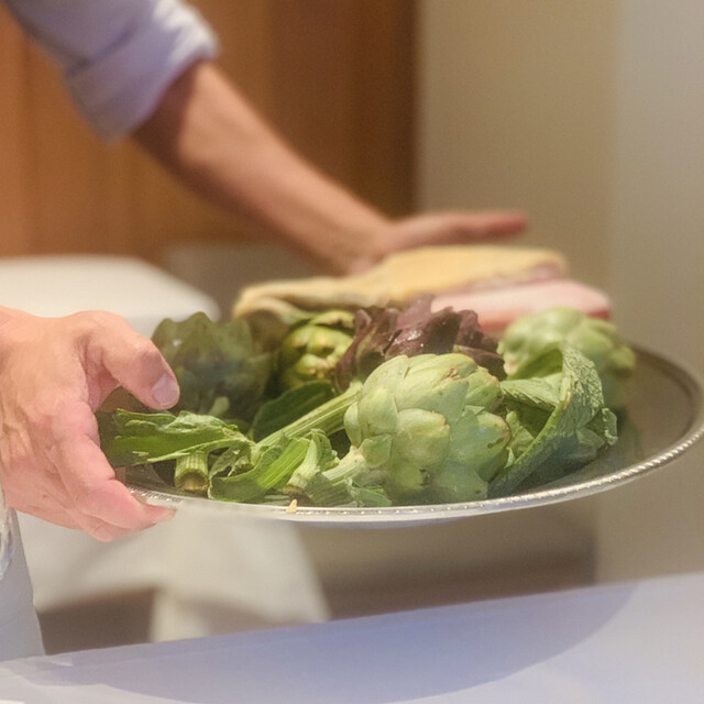 ★ 経産牛肥育25ケ月フィレ、2種(タルティーボ、カステルフランコ)の野菜とバラ肉の炒め+ 自家製深層海水塩添え