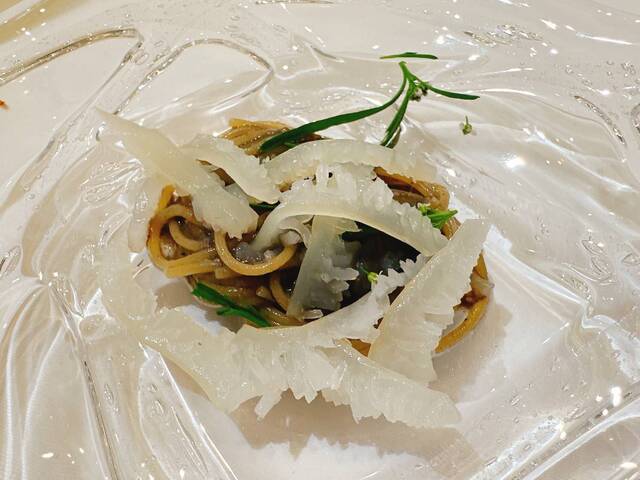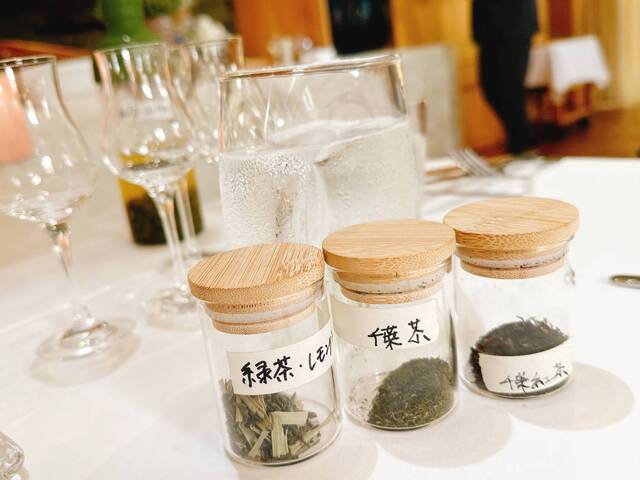 娘がノンアルのペアリングを頼んだら、とってもバラエティ豊かな色んなお茶を中心に出されて、食事によく合いました。頼まない私たちにもいくつかのお茶を少しずつ味見させてくれたりた、それも気の利いたサービスでした。