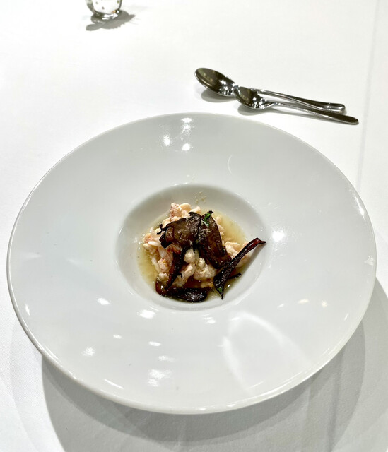 経産牛に天然伊勢海老、天然鰻、神経〆のカサゴにワニゴチ、藻屑ガニ。ダイヤモンドポークだけでなく鹿、猪、アナグマ、キョンまで入ったアフェッタートミスト。更に店主自ら採取したナラタケに日本版ポルチーニと言われるアカヤマドリタケ。海の幸、山の幸全てが入った千葉県産の稀有な食材と見事な組み合わせ。全てのメニューがとても美味しかったです。