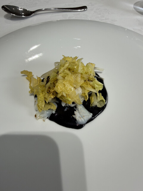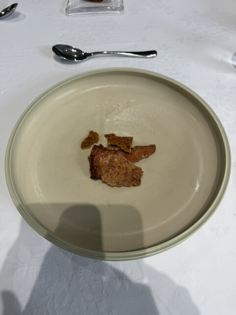 勝浦産キンメ、鱗焼き、大豆のパリナータ