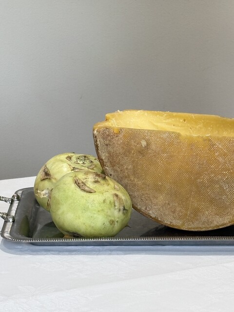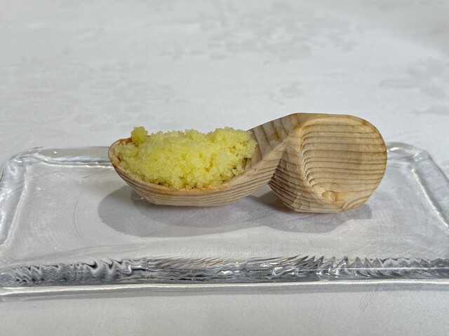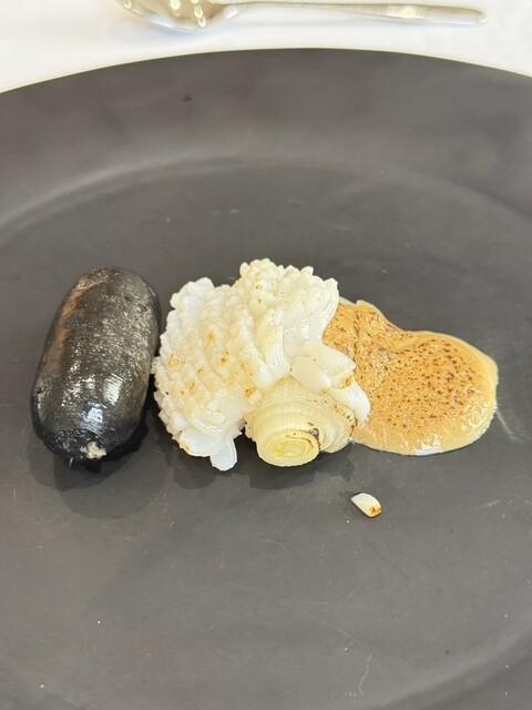 炭火焼き、聖護院大根、魚出汁のソース、ジャージせんまい