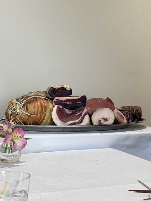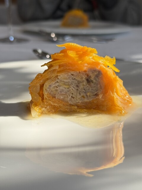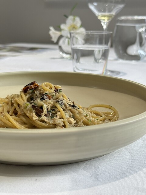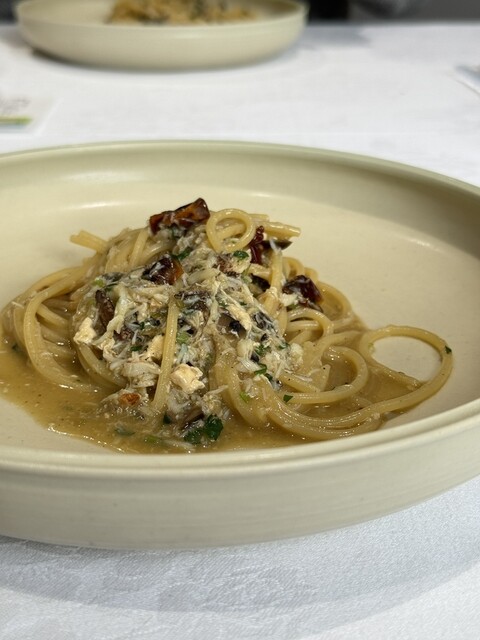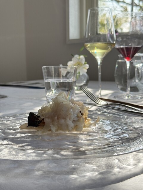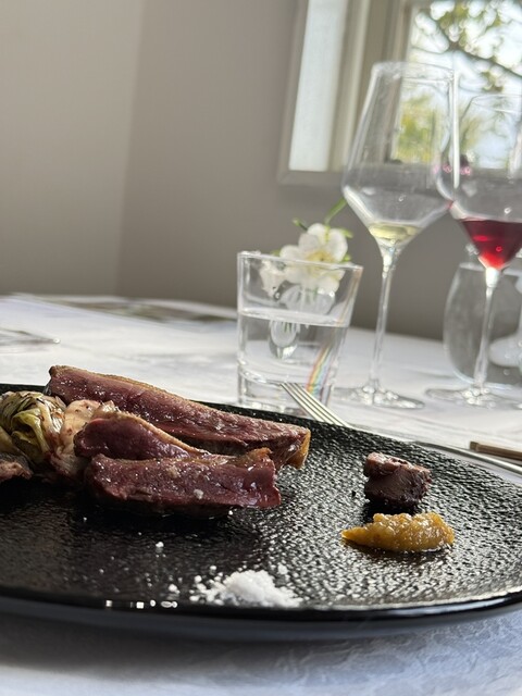 料理には千葉県産の新鮮な野菜や地魚、厳選された肉が惜しみなく使われており、特に自家製の加工品へのこだわりには驚かされました。多種多様な動物から作られた自家製ハムの盛り合わせは、イタリアの伝統を感じさせつつも個性的で、味の深みも香りも格別なまさに圧巻の一言です。また、新鮮なホウボウや、見事な技術で神経締めされたヒラメを用いたカルパッチョは、身の弾力と旨みが凝縮されており、素材を活かすオリーブオイルとの調和も完璧でした。房総の豊かな恵みをイタリア料理の技法で見事に昇華させた、記憶に残る美食体験となりました。