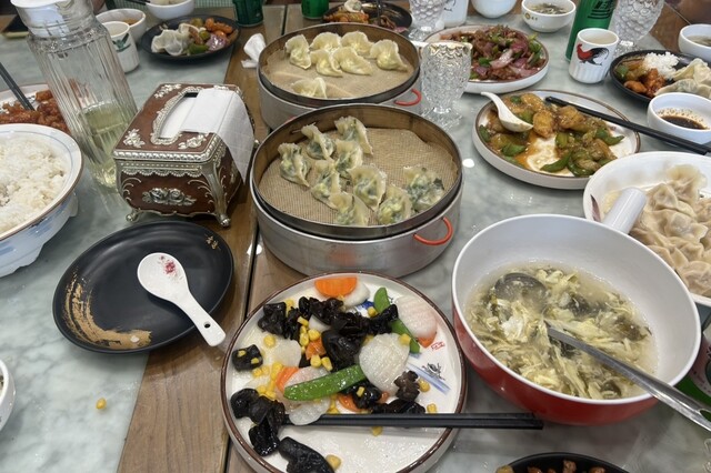 お昼は餃子料理のお店に連れて行ってもらって、美味しい数種類の餃子と冷えたビールで生き返りました〜♪