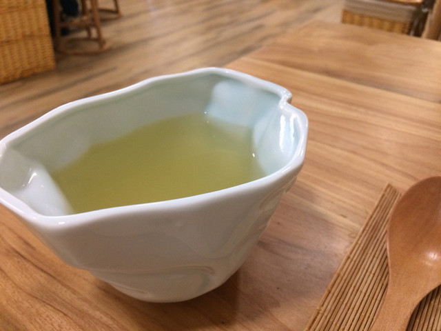 お店の雰囲気は、とても良い雰囲気です。なんと表現したらよいのか分かりません。シンプルチャイニーズという感じ?透明感があって、ふわっとしていて、光に優しく包み込まれるかのよう。接客は、そんなお店の雰囲気にあっていて、丁寧で優しい接客でした。麺が出てくるまでのピーナツのサービス、身体を冷やす蟹とバランスを取る為に、生姜茶が提供されてるいのは、中国らしいサービスですね。