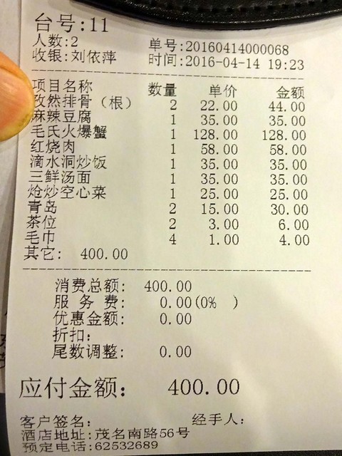 * 青島ビール 15元(約270円) (1元≒18円で換算 2016/4)