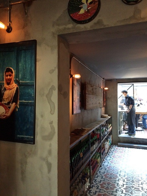 入ってみると、以前のお店と、内装は変わっていない。店員さんも変わっていない。ただ、お店に並べてあるお酒の中にウイグルの黒ビール等があったり、現地の人や建物、景色のパネルが壁に飾ってあったりと、すっかりウイグル料理屋さん。店員さんに尋ねてみると、オーナーさんは同じ方で上海人なのですが、奥様はウイグル人のようで、本場の作り方と食材にこだわった、本格的なウイグル料理が食べられるとの事でした。キッチンから覗く窯も、本場ウイグルから運んできたそうな。