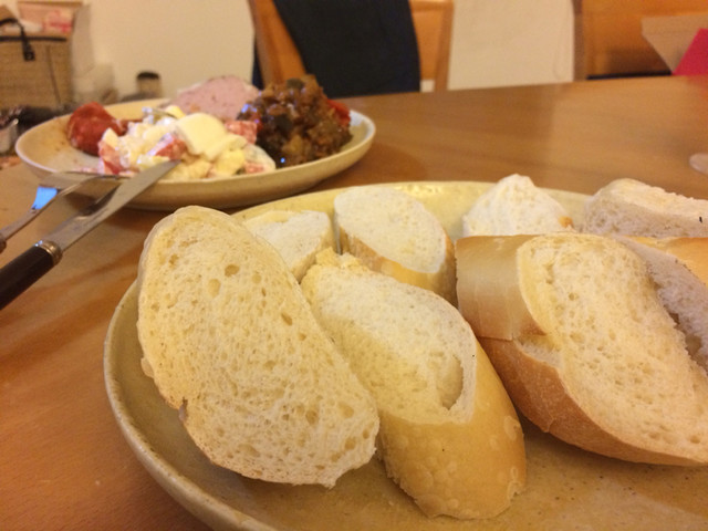 手作りチーズ、豚レバーのパテ、焼き野菜のサラダ、ポテトサラダにバゲットを購入して帰りました。