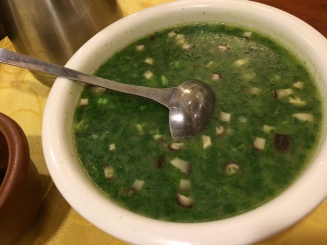 二階建てのお店は、道路から少し階段を降りた一階と、道路から階段を上がった二階の両方に入り口があり、何処から入ったものかと外で少しウロウロしていると、二階席で食事している男の人が、ガラス窓越しに、階段を上がって二階席へ来いとゼスチャーでお店の入口を案内してくれました。
