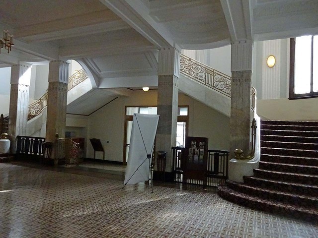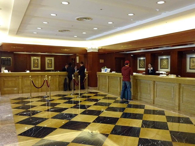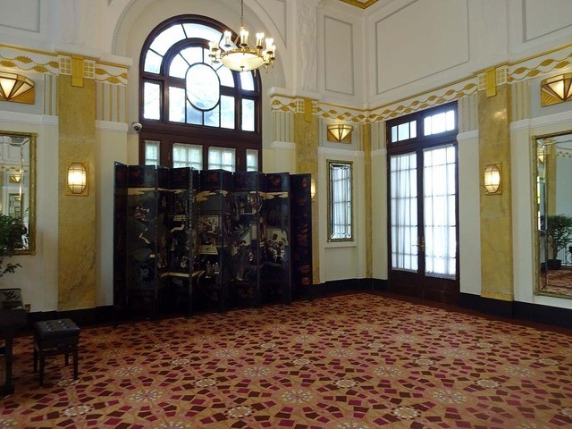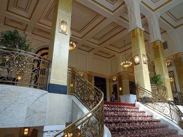 100年以上前から存在するという高層ホテルのロビーや公共部分の雰囲気は重厚。