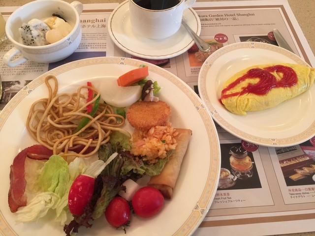 今日は上海出張です。こちらの居心地は本当に良いです。今日はここのホテルのローズで、楽しく朝食をたべました。朝食のバフェはとても充実しています。焼きそば、野菜類、玉子、焼き魚、目玉焼き、そば、シューマイ...