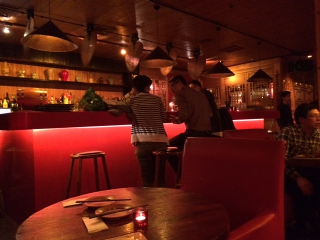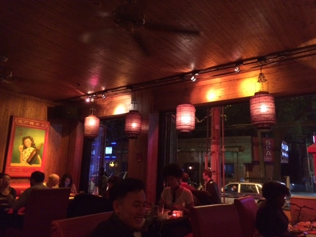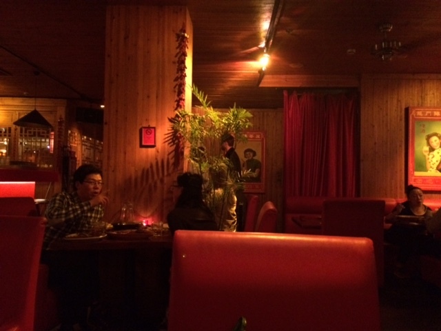 欧米人が多いエリアだけあり、欧米人のイメージする中国といった内装で、道路に面している大きなガラス窓は天気が良ければ完全オープンでここから出入りするお客さんもいたりして開放的ですし、とても雰囲気がよいですね。これぞ上海にあるお店と言ってもよいのかもとも思ったりして。照明が落とし気味なのもあり、どちらかというと四川風スナックを出すバーという感じが強いでしょうか。提供される料理も、お酒が進む濃い目の味付け。
