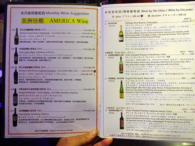 メニュー表には、たくさんの銘柄ワインをはじめ