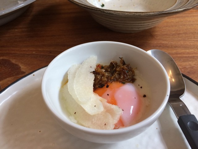 お部屋は、とてもシンプルな内装。白色の壁、木製のテーブルに椅子、暖色系照明に植物と、爽やかで温かみのある印象。お部屋は、扉で間が仕切られた、大きな部屋と小さな部屋の全部で2つ。この日は2人だったので、小さなお部屋でした。因みに、最大で、間の扉を開放して20人位まで対応可能だそうです。テーブルには、お客さんの名前と今日のメニューが印刷された紙が置いてあり、そこには更にWi-Fiパスワードまで書いてあるという、女性オーナーさんの心配りが光ります。