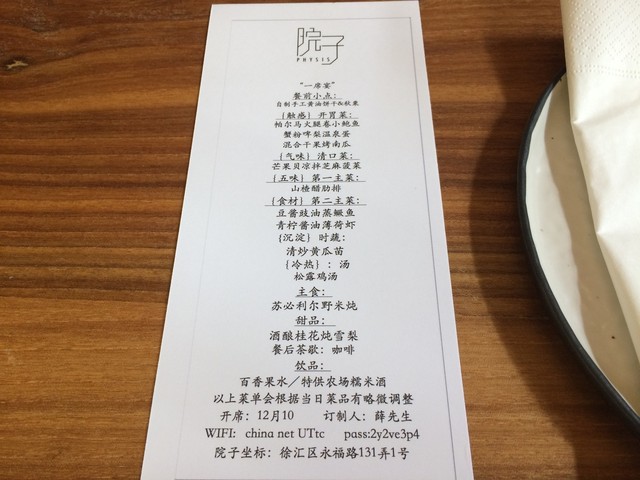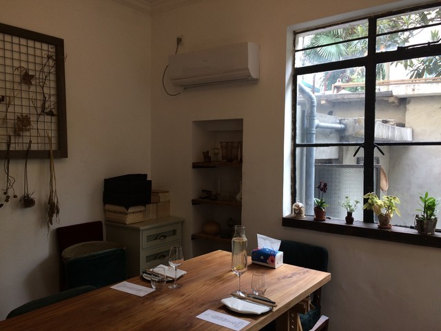 提供するのは、昼も夜も248元のコースのみで、中華をベースにし、西洋の調理方法や食材を一部取り入れた、女性オーナー自ら作る家庭料理がメイン。内容は、季節や仕入状況、人数によって変わるそうです。仕入れる食材は、契約農場から直接調達する新鮮なもので、化学調味料や大量の油を使わない、食材の味と色彩を大事にした美味しく優しい料理たちです。更に、農場で作ったもち米の酒もついているので、コスパもとても良いです。お酒をもっと飲みたい人は、持ち込みも可能だとの事なので、事前にご相談を。手作りバースデーケーキなんかも対応してくれるそうです。