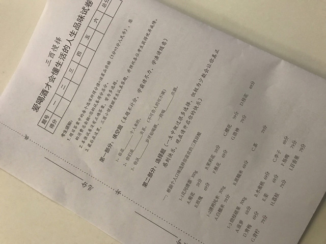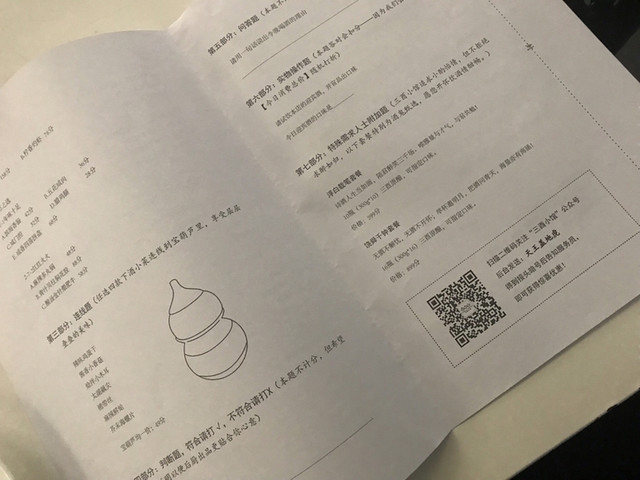 メニュー表がちょっと変わっていて、テスト用紙のようなものに書かれた質問に回答していく形式です。中国語が分からないと、ちょっと辛いかもですが、漢字なので大丈夫でしょうか?英語は通じるスタッフがいるようですから、分からない場合は英語で質問するのもOKでしょう。