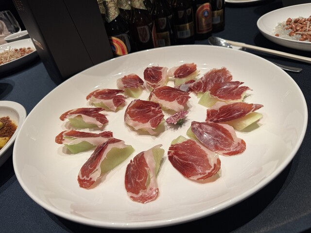 会食で個室利用。前菜に生ハムメロンなども出て来る、普通の広東系というより少しフュージョン系の感じもするレストランで、一般的な広東料理とは少し違うレストランです。