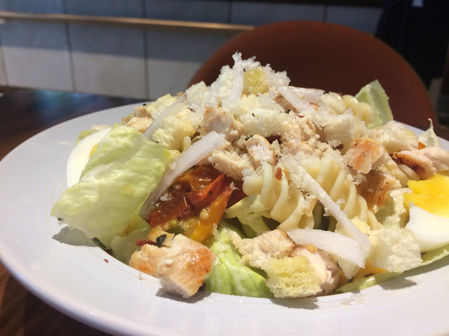 お昼は、パスタやサンドイッチなどがメインで提供されているようですか、一応、看板メニューのフィッシュ&チップスも目立たない場所(なぜかサイドディッシュコーナー)に書いてあったので、それをメインディッシュとして注文。追加でサラダも注文しました。