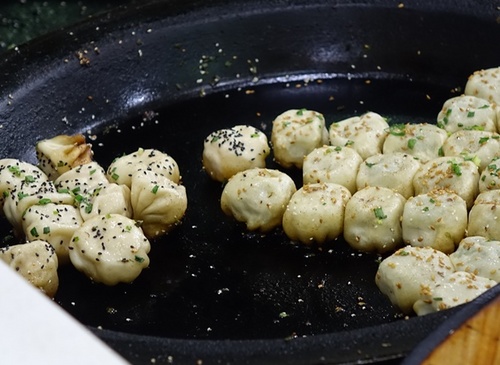 生煎とは、小ぶりの肉まんを鉄鍋で焼いた料理です