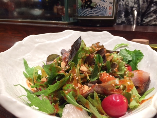 中国語の授業が終わった後だったので、訪問したのは20時半頃。居酒屋さんとしては、決して遅くはない時間。お客さんは、座敷に一組(騒がしい日本語の会話が聞こえたので日本人の団体様か)と、テーブル席に二組のみ。私は、おひとり様だったので、スーツを着た女性マネージャーさんのようなカウンター席に案内されるがまま着席。
