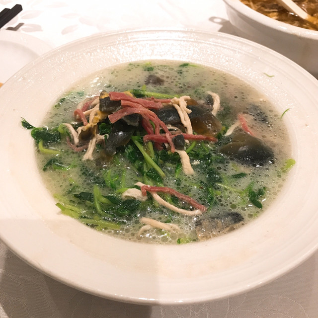 上湯豆苗。火腿と皮蛋で重層的な味の深み…のハズが、これもかなり「わかりやすい」おいしさになっている。