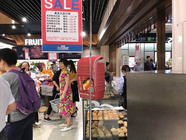 本店は南京東路にあり、そちらはそれなりの行列になっていたことでしょうが(因みに、以前、中秋節少し前に購入した際は5分くらいで買えました)、作りたてにこだわらなければ、デパ地下などの店舗でも購入でき、行列に並ぶ必要もありません。