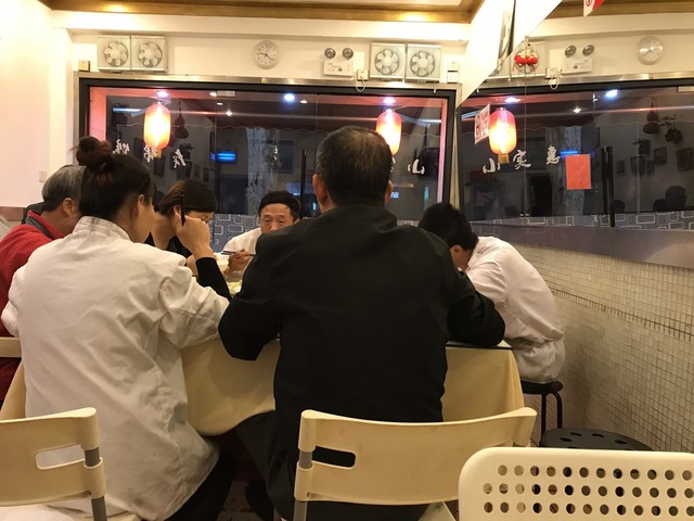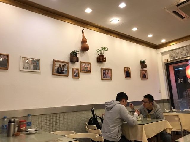かなり庶民的な雰囲気のお店ですが、どうも有名店のようで、壁には著名人が食事に来た際に撮った写真が飾られています。後で聞くと、上海風のトンカツが一番人気で、食べに来る人が多いのだとか。