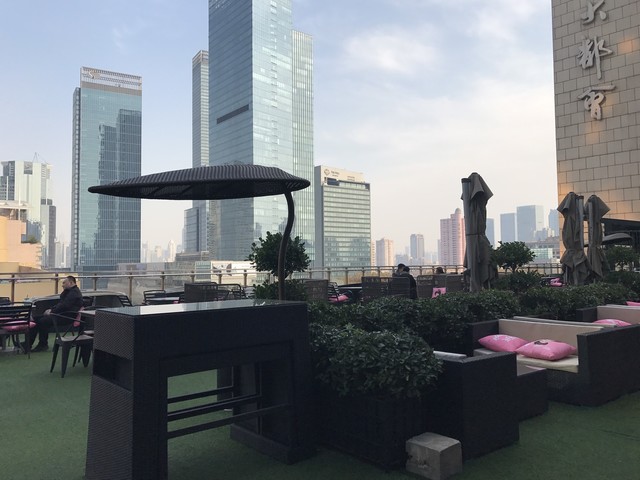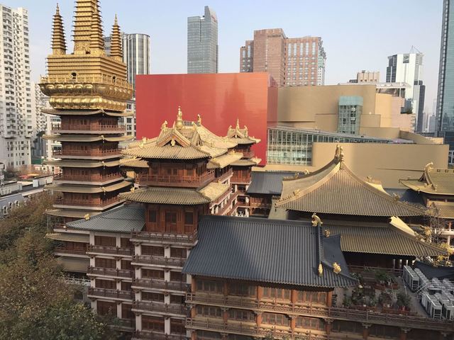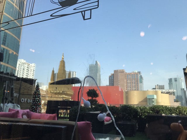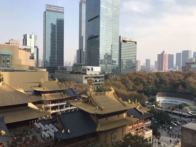 お店の売りは、名前にもあるように景色。ベランダ席的な場所からは、静安寺を斜め上からの眺めることができ、地上から見るのとは違って壮観。