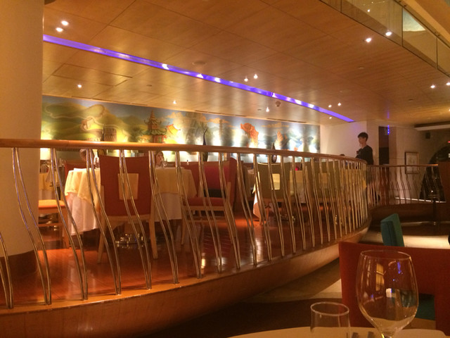 ホテルに入って手前正面、右手前、左手前に階段、もしくはエスカレーターがあって、そちらから2階に上がるのですが、こちらのレストランは、吹き抜け空間を囲む四角形の一番奥の辺に当る場所にある為、他のお店を通って行かないといけないので、わかり難いですね。でも、途中、他のお店のスタッフが親切丁寧に、どこに行きたいのか?どの位置にあって、どう行ったらよいのか?を尋ね、教えてくれます。因みに、全部英語でした。