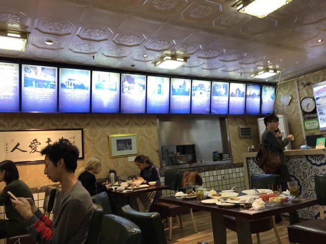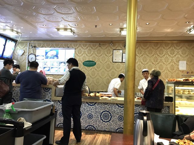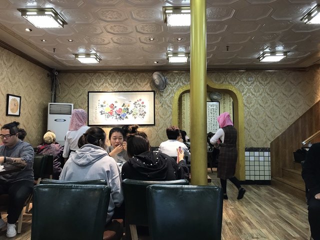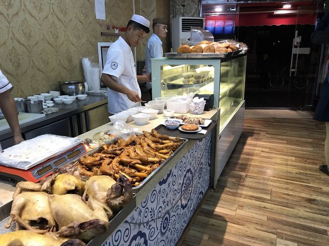 大世界から人民広場方面へ少し行った場所にある、清真料理のお店です。お客さんがたくさん居て、お店の中も活気がありますが、羊の串焼きなどを売っていて、外も活気があるお店です。