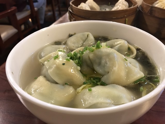 注文したのは、大きくて厚めの皮にたっぷり包まれた餡に濃厚スープの小籠包に、上海辣醤油で食べるサクサクジューシーなとんかつといった定番メニューに、カリカリに焼かれた薄皮にたっぷりニラ餡の鍋貼、あっさりながら味わい深いスープにつかったワンタン。ミシュラン2ツ星からの落差はかなりなものがあるかもしれませんが、その残念な感じを払拭してくれる庶民の力強さがあり、一緒に行った友人も、とても美味しいと気に入ってくれました。