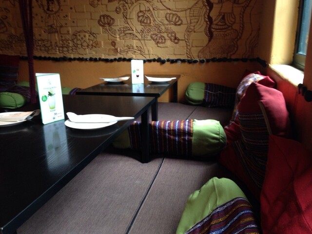 店内は一番奥に小上がり上になったスペースがあって、ここがクッションふかふかで落ち着ける。