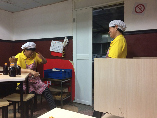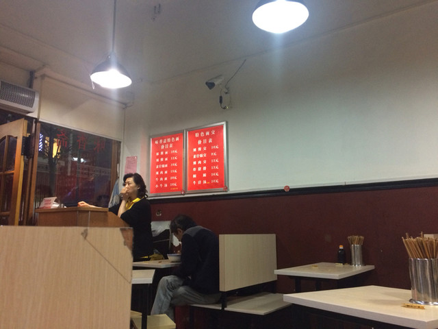 お店は、良くある感じのローカル麺屋さんという雰囲気。注文も、入口直ぐのカウンターでし、その際に支払も済ませて番号付の伝票を貰う方式。その伝票と、席に置いてある席番号の書かれた洗濯バサミとを店員さんに渡して、あとは出来上がりを待てばよし。中国語しか通じないので、中国語ができない場合は筆談ですね。