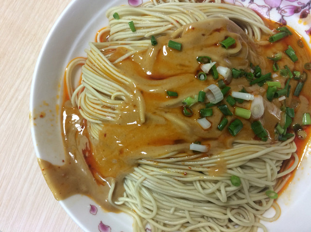 注文したのは、お店のウリだという麻醤麺。麻は、麻辣の麻ですが、麻醤の麻は、胡麻(中国語では芝麻)の麻。胡麻ペーストのたっぷりかかった麺は、想像した味とほぼ同じ。複雑な味ではなく、シンプルな材料が合わさった味。ほっとしなくもない。
