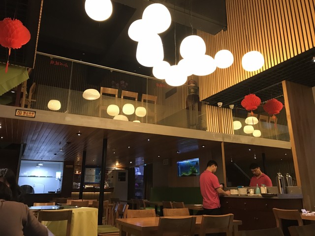 お店は落ち着いた雰囲気。仏教を思わせる内装ですね。水槽の中でエビが泳いでいますが、当然、食べ物ではありません。
