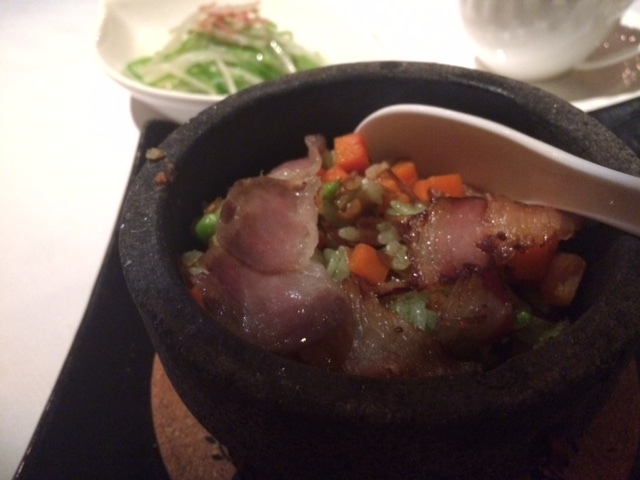 そんな優雅なエリアにあるコチラのお店へ入店すると、直ぐにスタッフの方が、ピアノの生演奏が響きわたる中を、席へと案内してくれます。内装がとても特徴的なのは、入店して直ぐに気が付くのですが、席に着いて暫くして更に気が付くのは、調度品やら食器やらのほぼ全てが曲線の組合せでできている事。私が見た限りでは、直線はお箸のみ。芸術に疎い私にはわかりませんが、こういうのをアートヌーボー様式と言うそうです。この様式を取り入れているお店は、中国ではココだけなんだとか。