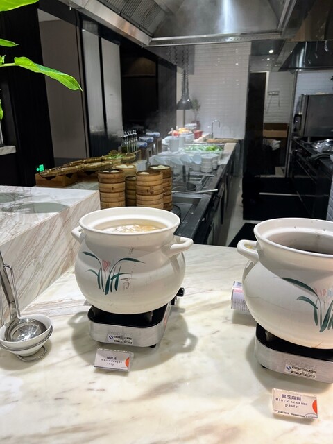 [上海]ハイアットの朝、点心にお粥 味わい深く、ハムも種々と
