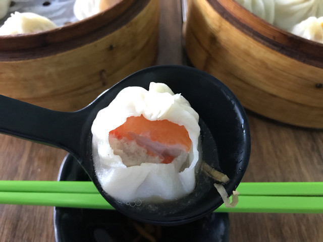 こちらの特徴は、12種類も小籠包があること。ノーマルの鮮肉小籠包や、蟹味噌入りの蟹粉小籠包はあたりまえ。覚えている限りで、エビ、塩漬け卵、キムチ、アスパラ、山芋、アサリ、貝柱、サザエ、何故かカニカマ…、あと1つ思い出せません。
