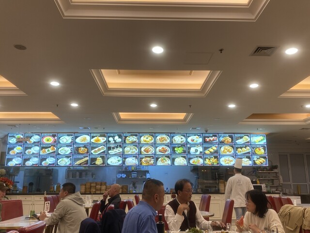 席でのメニューはないので、基本的に入り口にある生簀で食べたい魚介を指し示して調理(基本は蒸し料理かな?)してもらうか、パネルの料理を示してお兄さんにオーダー。(指差しなので中国語できなくてもなんとかなります)