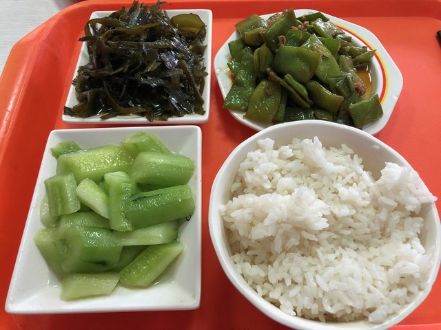 土曜日、会社の食堂は休みなので、昼食をここでとった。惣菜を好きにとって、最後にレジで支払う方式。肉や魚もちゃんとあるが、自分は野菜だけにした。しかし、種類が豊富なので、困らなかった。