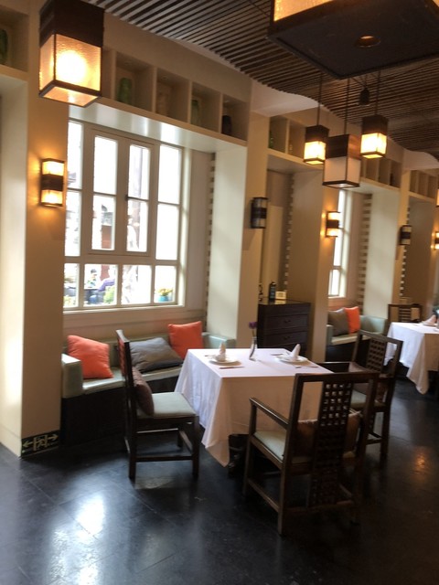 こちら中国杭州は湖濱地域、白伝路沿い。本来は新しくできたホテルにあるダイニングですが、我々はお茶で利用。まずはゴージャスな雰囲気に圧倒、セレブな地元の方がけっこういらしてます。たしかこちらの建物は韓国...