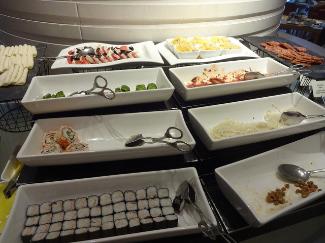 料理も、オードブル各種、点心、サラダ、羊肉串、寿司、ケーキなどがありました。