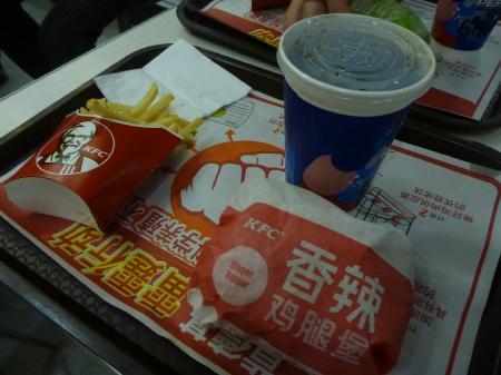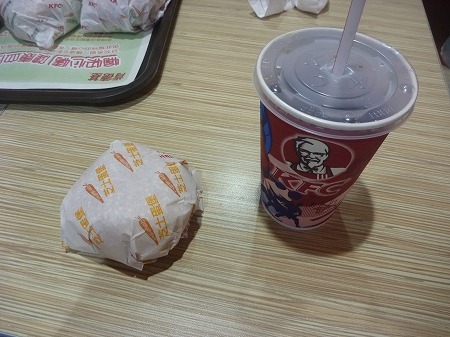 もう一つの画像は午後7時頃青島空港に到着、夕食にホットフィレサンドを頂きました、日本国内の物より少し辛さが強い気がしました。