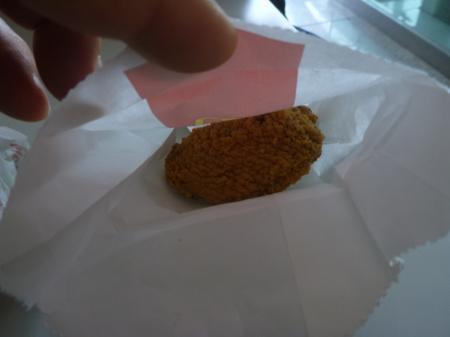 早速頂く・・チキンホットサンド・・手羽元ホット唐揚げとドリンクのセットで40元(約日本円600円)