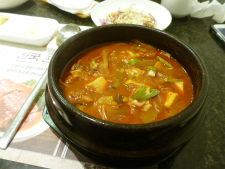 チゲ鍋30元/小鍋→味噌が何時も食べるのと違い塩辛く旨みが無かった感じが・少し残ねだった。