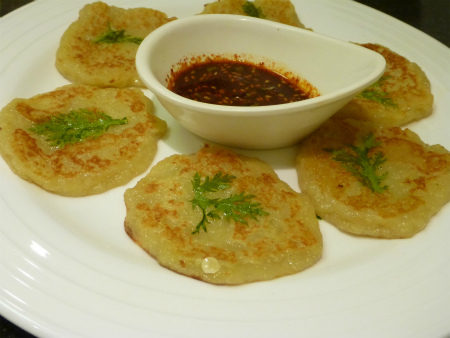 ポテトチジミ25元/皿→私の好きな一品、こちらのももっちりで美味しかった。