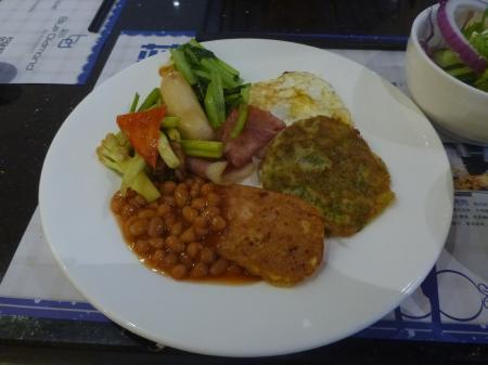 サラダ、粟のお粥、フライドエッグ、野菜炒め、ポークビーン等・・味付けは結構優しい味わいでいい!