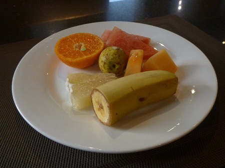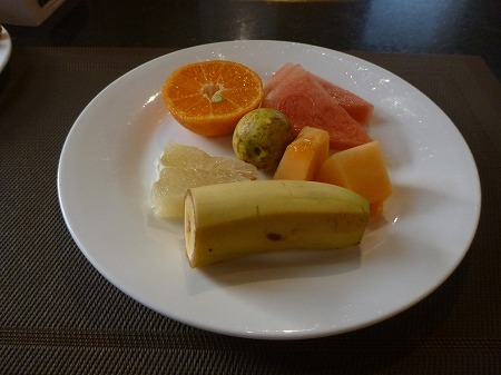 最後にフルーツを・・バナナ、ハミグアメロン、バナナ、スイカ、ナツメを・・